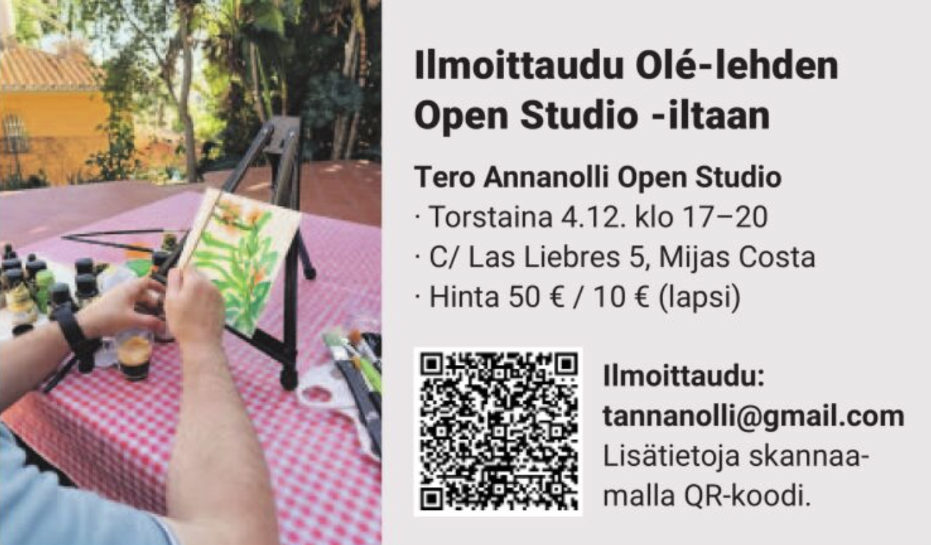 – Olemme myyneet kotimme Suomessa ja miettineet, että miksei perhe voisi asettua tänne. Koen, että tämä valo ja lämpö inspiroi taiteellista työtäni, ja pedagogina haluaisin tuoda kulttuuria ja sen ymmärrystä myös Aurinkorannikon suomalaisille.¨