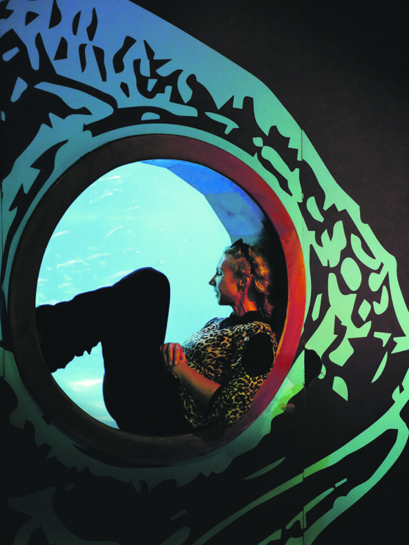Elokuvateatterimainen sali toimii ehdottomasti yhtenä vierailun kohokohtana. Siellä tosin katsellaan valokankaan sijaan hieman toisenlaista elävää kuvaa: reaaliajassa ohi lipuvia mereneläviä. Jättimäisen altaan pääroolissa ovat hait ja muut merenasukkaat