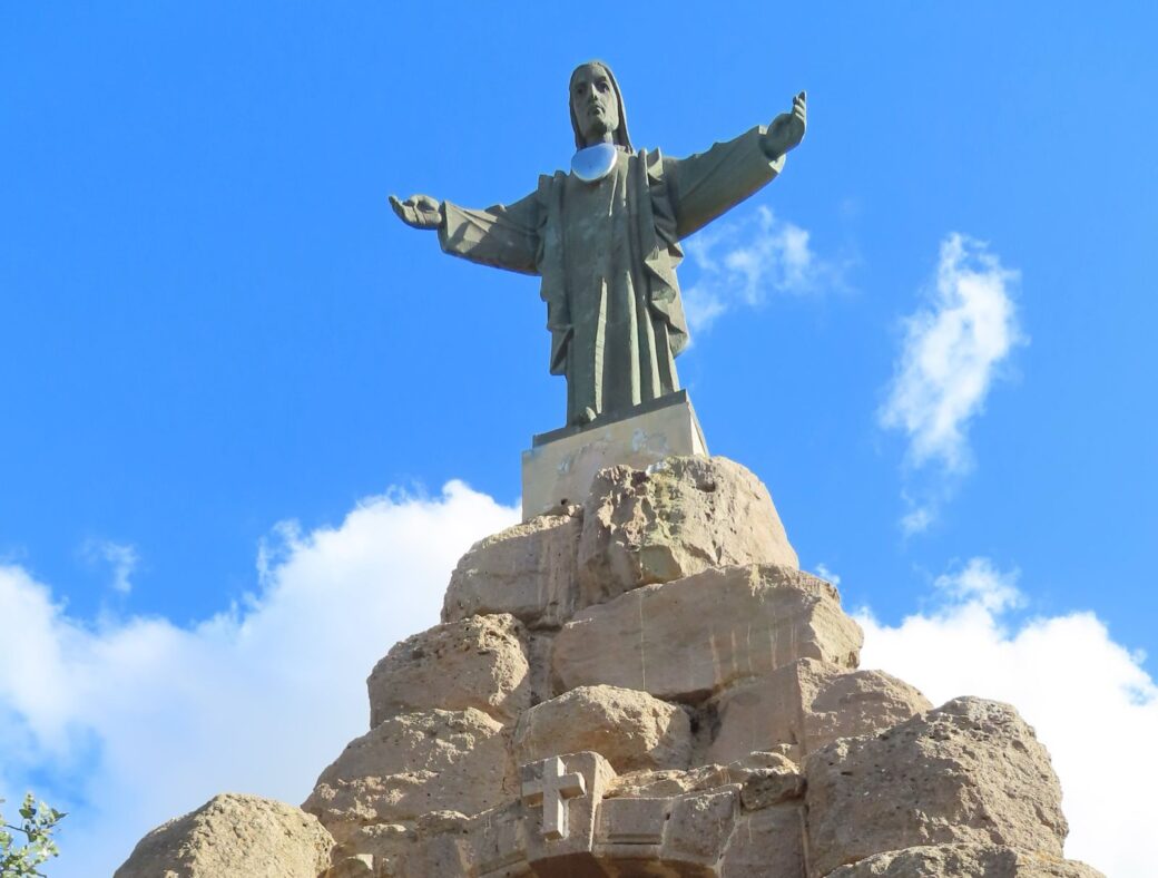 Pyhimyspatsaan yli 100-vuotinen historia on kuvattu ylhäällä parilla taululla, kuvin sekä espanjan- ja osin englanninkielisin tekstein. Patsaan harras olemus pysähdyttää – ei tällaisia enää tehdä. Sitten on aikaa vilkaista ympäristöön. Pizarran maisemat avautuvat nyt kokonaisuudessaan, ja taustalla näkyy Zalea. Kauempana oikealla näkyy Àlora, jossa on junalla tuleville vaihtoehtoinen asema. Matkaa sieltä tulisi tosin kymmenisen kilometriä lisää. Tarkkasilmäisimmät löytävät horisontista myös Alhaurin el Granden mysteerilinnan. Jos viivyt huipulla hiemankin pidempään, voit nähdä alhaalla kulkevan junan. Ja jos olet liikkellä autolla, muista käydä upealla kivisillalla, jonka yli junarata kulkee.