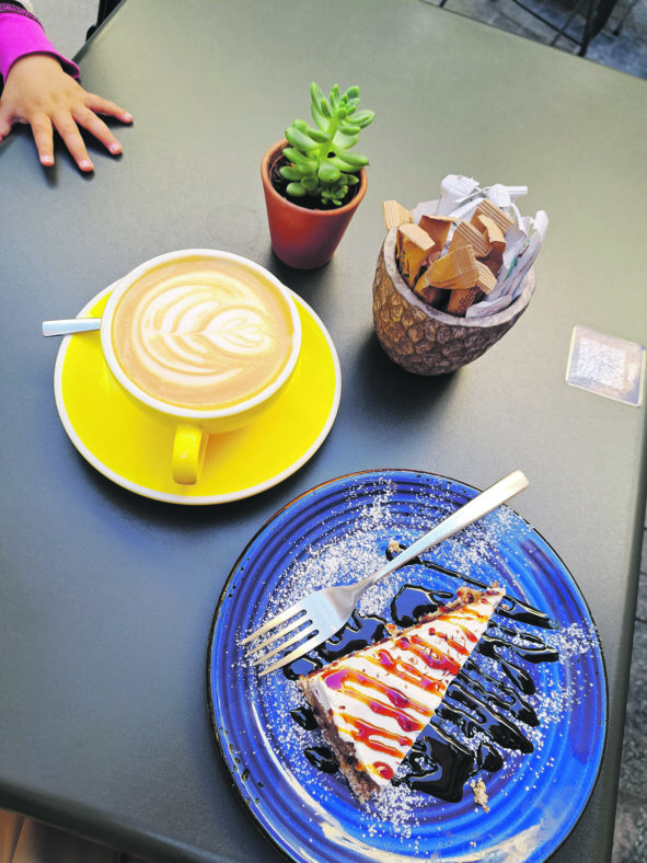 Makean nälkään maistuvat myös kahvilan kakut, ja kahvia tarjoillaan reiluissa kupeissa. Annoskoot ovat ylipäätään todella runsaita, joten tämän aamiaisen jälkeen jaksaa kierrellä ja katsella Málagan nähtävyyksiä.